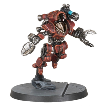 The Arlatax Battle-Automata is a specialized Mechanicum war machine that utilizes jump boosters to swiftly reposition itself across the battlefield. Its combination of speed and potent close-range weaponry, including a lash whip and power claw, makes it a deadly shock assault unit for hunting down enemy vehicles and infantry.