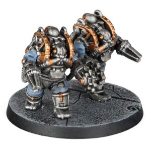 The Arlatax Battle-Automata is a specialized Mechanicum war machine that utilizes jump boosters to swiftly reposition itself across the battlefield. Its combination of speed and potent close-range weaponry, including a lash whip and power claw, makes it a deadly shock assault unit for hunting down enemy vehicles and infantry.